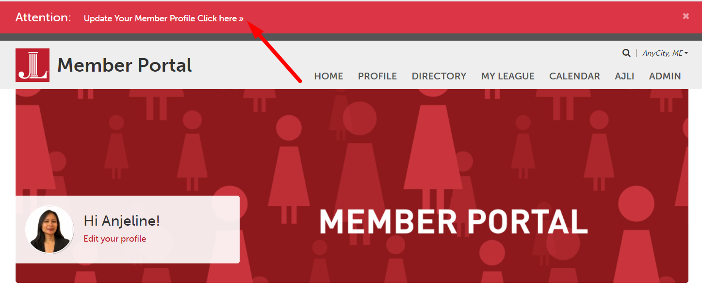 For example, to link to the member's profile, highlight and paste this part: https://vms.ajli.org/?nd=profile - Alertbar Message - Message of your alert bar