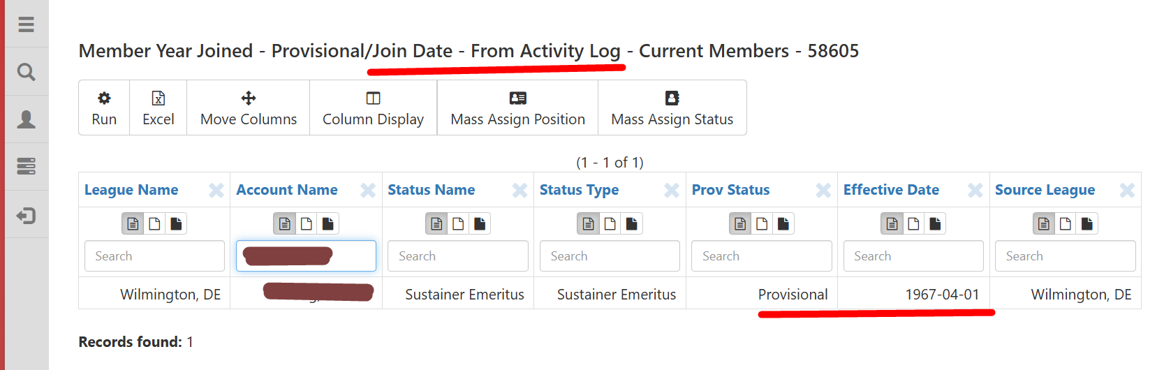 Alternatively, if the League maintains other documentation that includes this information, it should be used to update and complete the Member’s profile. Ideally, all Members should have complete historical Provisional and Active dates for accurate League reporting.